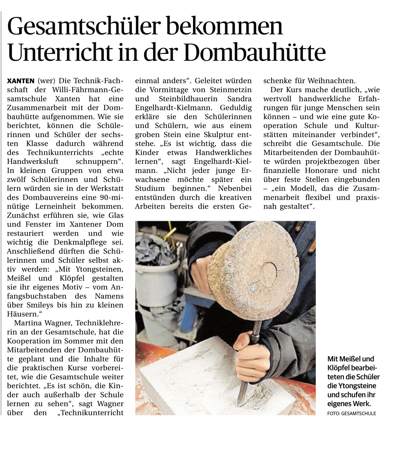„Steinmetzin Sandra Engelhardt-Kielmann bringt Schülern ihr Handwerk näher“